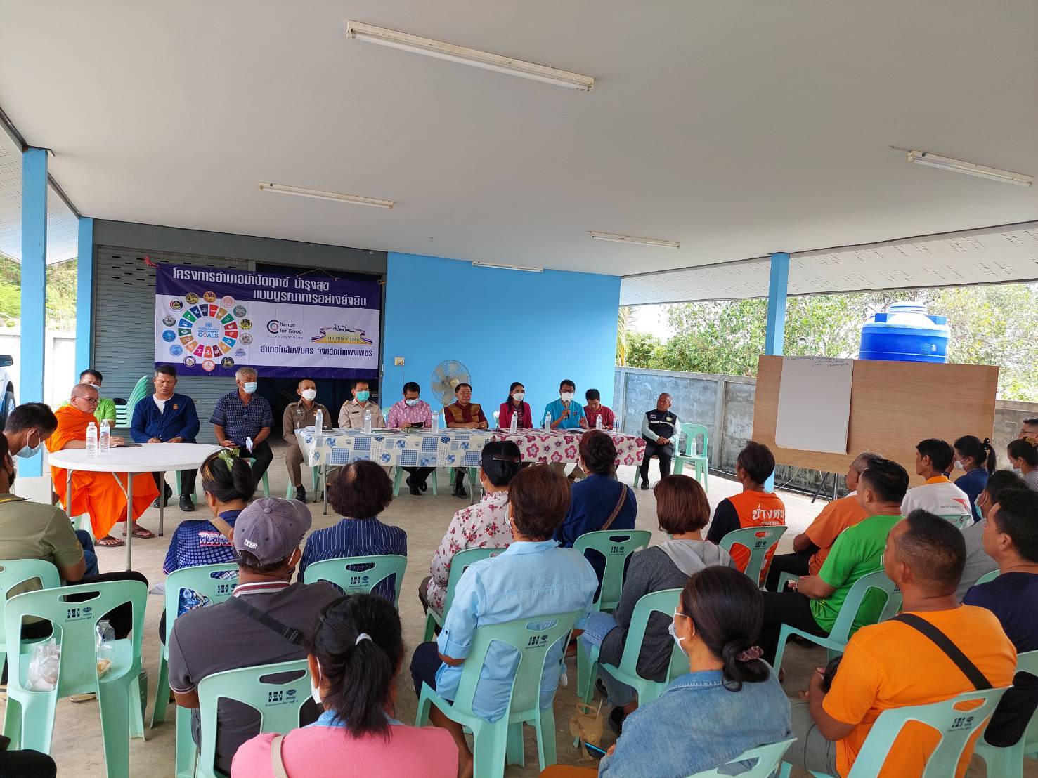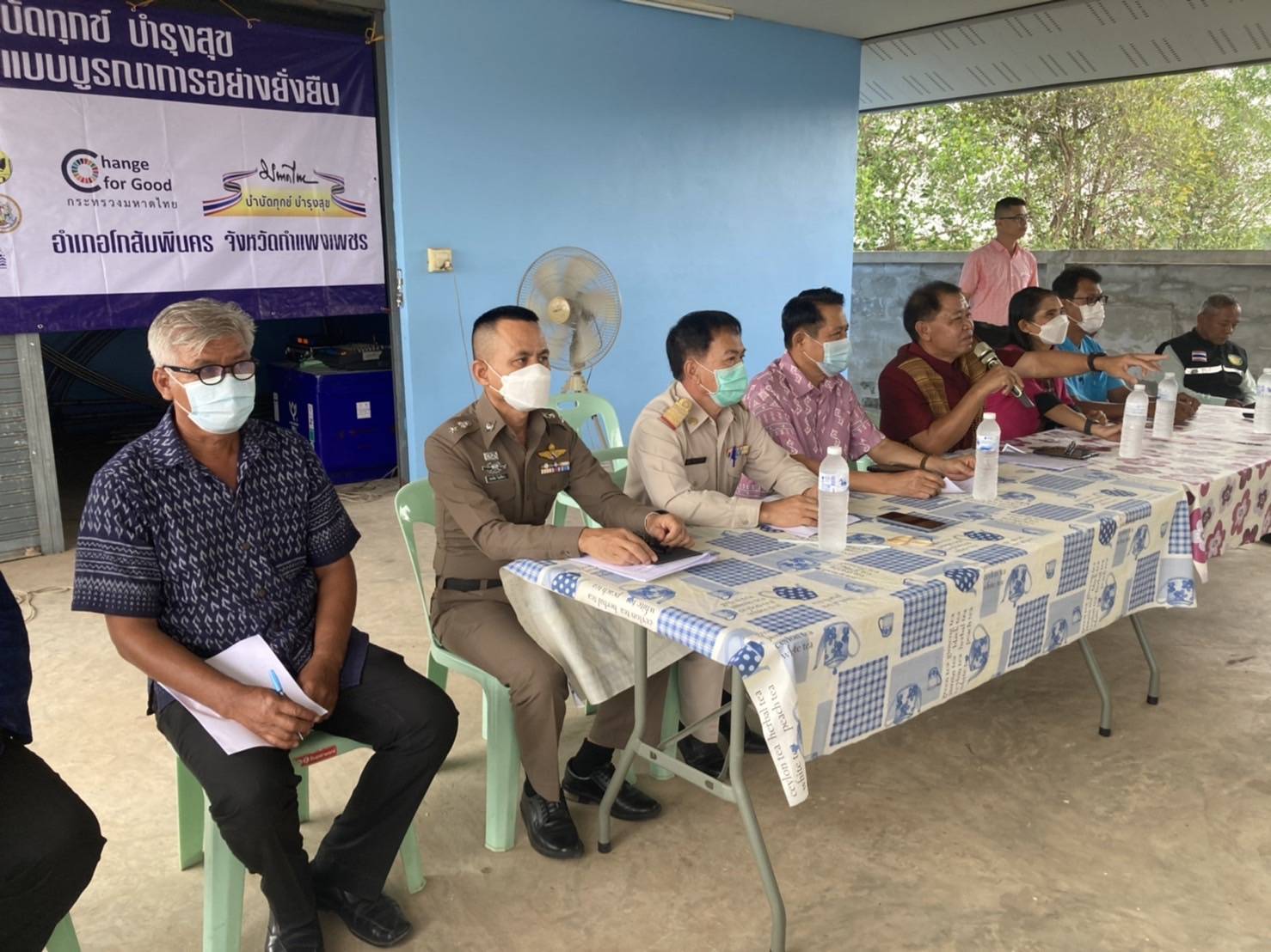 พ.ต.อ.ณัฐศักดิ์ จริยคุณ ผกก.สภ.โกสัมพีนคร พ.ต.ท.สมบูรณ์ คล่องใจ รอง ผกก.ป.สภ.โกสัมพีนคร ได้สั่งการให้ พ.ต.ท.ชนทัต วันเขียว สวป.สภ.โกสัมพีนคร ร่วมประชุมโครงการ 1 ตำบล 1หมู่บ้าน ยั่งยืน